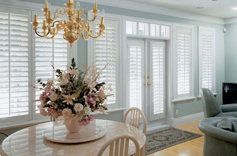 Specialty Shapes: Thanu's offers several custom specialty shape designs. From arches to ovals, angles to octagons, there is a Richwood® Shutter specialty shape design to complete even the most elaborate window ensemble. Choose between stationary sunset louver or movable starburst louver configurations.